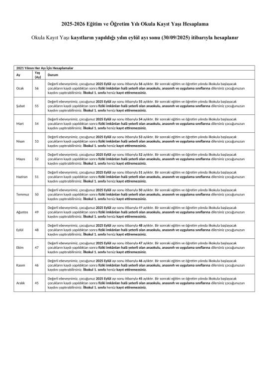 2025-2026 Eğitim ve Öğretim yılında okul öncesi eğitim ile ilkokul 1. sınıfa başlayacak öğrenciler için yapılacak Uyum Eğitimlerine ilişkin tarihler Milli Eğitim Bakanlığı tarafından ilan edildiğinde ayrıca yayınlanacaktır.